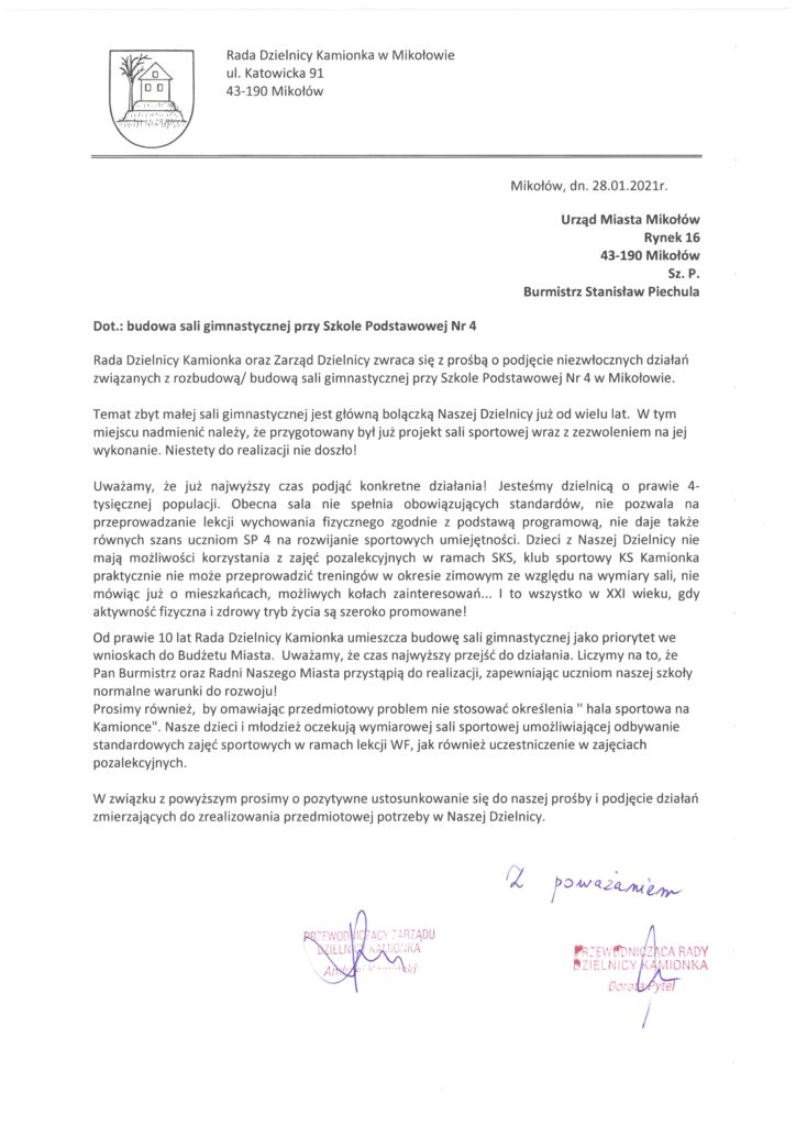 Opublikowano 4 lutego 20214 lutego 2021Opublikowano w sprawy urzędowe APEL DO UM W SPRAWIE SALI GIMNASTYCZNEJ