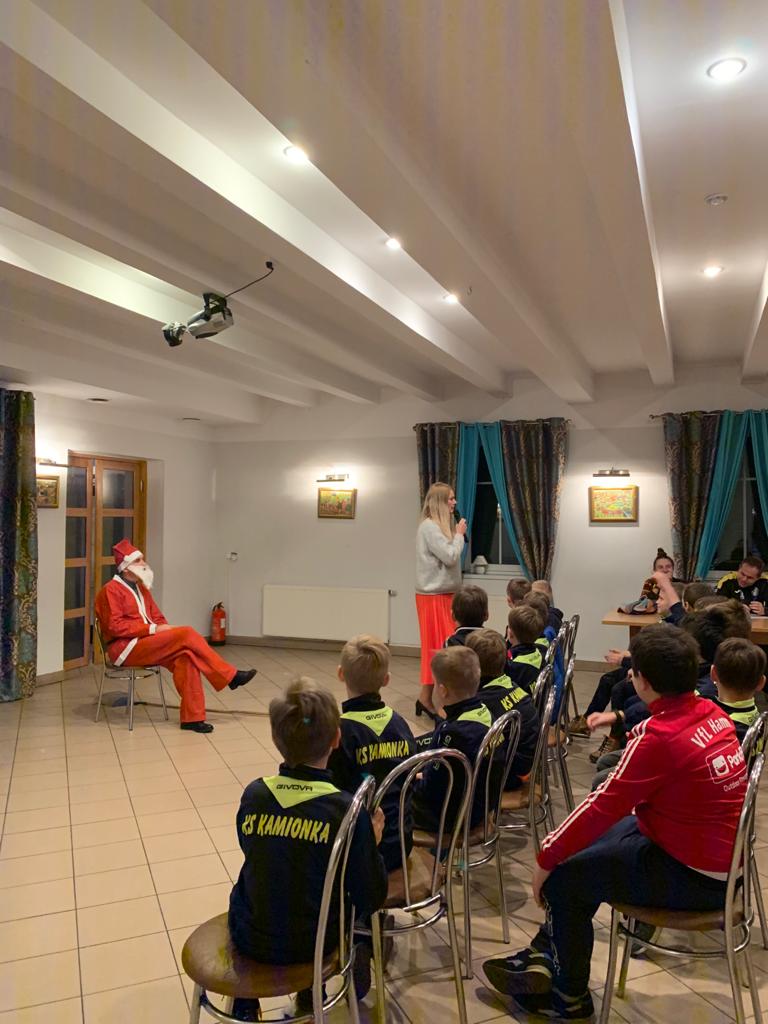 W dniu 6 grudnia 2019 roku wychowanków KS Kamionka odwiedził św. Mikołaj. Zadał on dzieciom wiele pytań dotyczących ich postępów w szkole i na treningach. Spotkanie zorganizował Zarząd Klubu. Młodzi sportowcy mieli okazję popisać się swoją wiedzą z zakresu piłki nożnej podczas quziu oraz zaprezentować umiejętności aktorskie w konkursie “Jaka to dyscyplina sportowa?”. Następnie przyszedł czas na wręczenie podarunków i pamiątkowe zdjęcie z naszym Mikołajem. Na pożegnanie Zarząd Klubu złożył wychowankom i ich rodzicom najlepsze życzenia świąteczne a Mikołaj opuścił sportowców w pośpiechu wzywany przez kolejne obowiązki.
